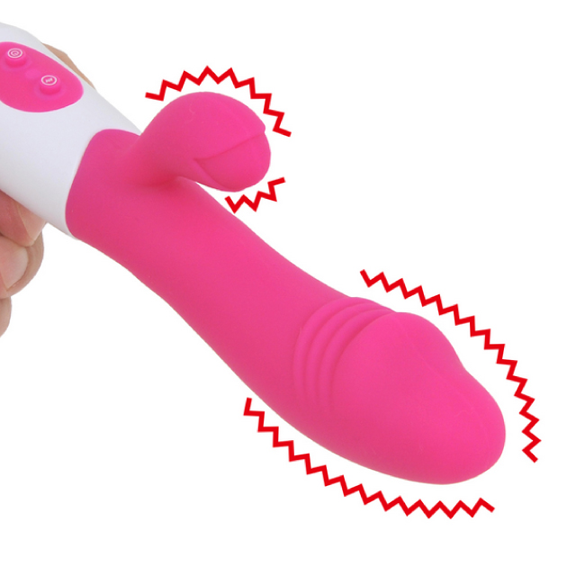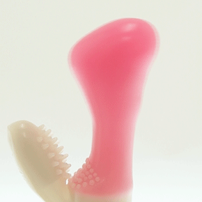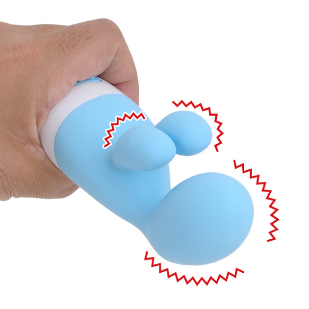 手に見えるクリバイブでクリトリスを挟み、内側からGスポット責めをする高刺激タイプのバイブです。